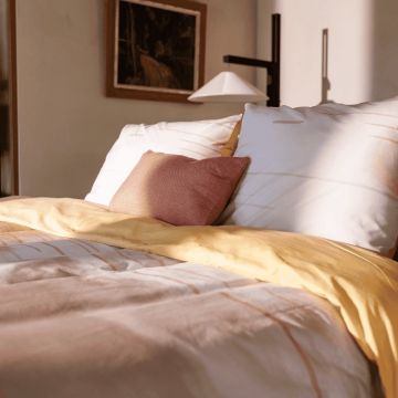 Leinen ist ein natürliches Material, das sich herrlich luftig anfühlt. Ein Bettbezug aus Leinen ist sehr atmungsaktiv und feuchtigkeitsabsorbierend. Dadurch fühlt er sich im Sommer angenehm kühl und im Winter kuschelig warm an. Ihr Körper bleibt perfekt temperiert, so dass Sie schnell einschlafen und gut schlafen können. Dank der Struktur des Gewebes fühlen sich Hausstaubmilben auf Leinen nicht wohl. Daher ist Leinen auch ein idealer Stoff für Allergiker und Kinder.