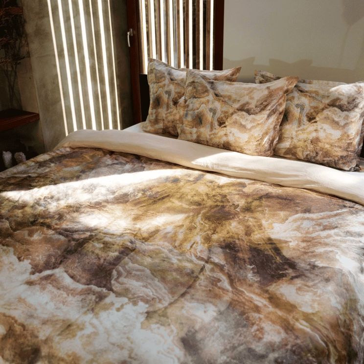 Hado is een dekbedovertrek met een unieke print waarin verschillende kleuren organisch in elkaar overlopen. Hierdoor oogt de print parelmoerachtig, wat zorgt voor een luxe uitstraling. Het overtrek is goed te combineren met diverse kleuren hoeslakens. Denk aan kleuren als zand, wit, offwhite en taupe.De uni kleur aan de achterkant van het overtrek is offwhite. Hado is gemaakt van 100% katoensatijn en heeft een thread count van 200.