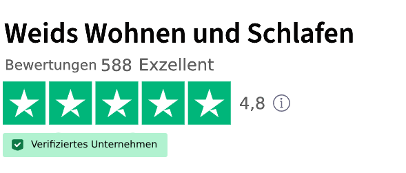 Weids Wohnen und Schlafenwendet die Garantiebedingungen an, die vom Zentralen Handelsverband für Wohnen, unter anderem mit dem Verbraucherverband, vereinbart wurden. Die Produktgarantie beträgt standardmäßig 3 Jahre auf Basis der Wertminderung: Im ersten Jahr werden Ihnen die vollen Kosten für Reparatur oder Austausch erstattet, einschließlich Fracht- und Anfahrtskosten; Im zweiten Jahr werden Ihnen 2/3 der Kosten erstattet; Im dritten Jahr wird Ihnen 1/3 der Kosten erstattet.