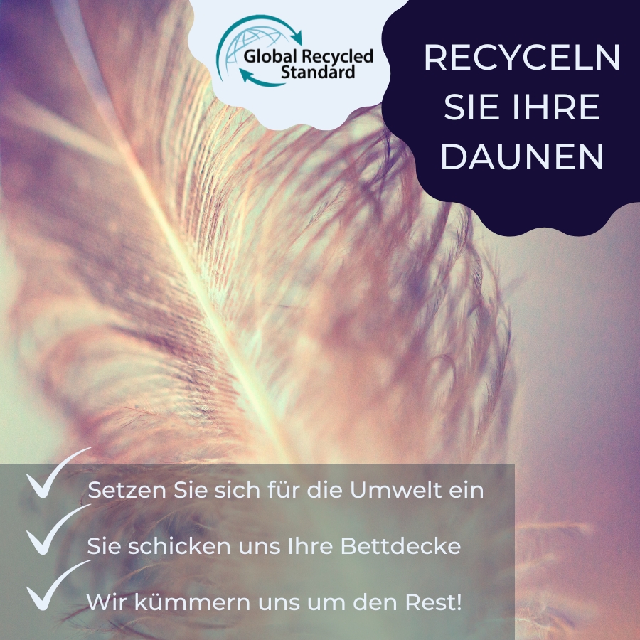 Die Wolle wird gründlich gewaschen und nach strenger Qualitätskontrolle kreislauforientiert für andere Produkte wiederverwendet, darunter Sitzsäcke für Menschen und Tiere. Die Bettbezüge werden abgenommen und unter anderem zu Isoliermaterial, Putzlappen und Baumaterialien verarbeitet. Auch die Daunen werden jetzt recycelt. Wir nehmen diese Bettdecken zurück und geben sie an unseren Lieferanten Ducky Dons weiter, damit die Rohstoffe nachhaltig wiederverwendet werden können. Lesen Sie mehr darüber hier.